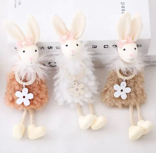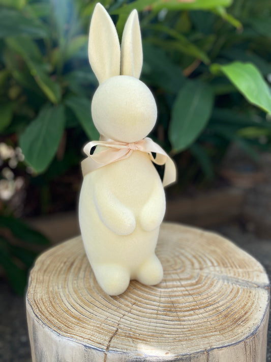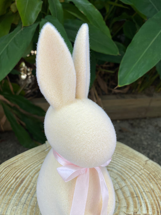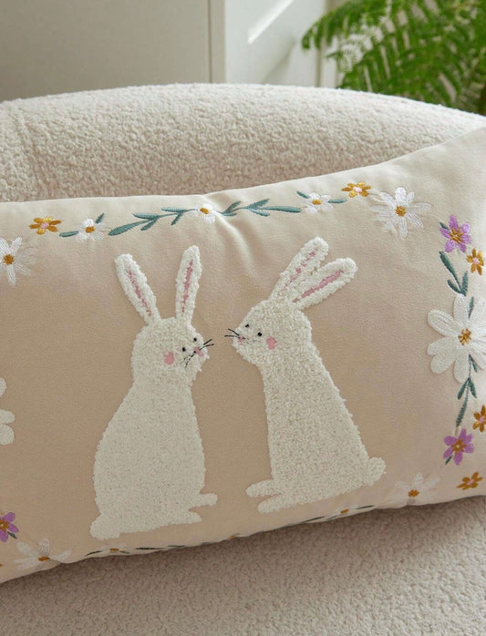 Double Rabbit Floral Embroidered Cushion Beige 30x50cms
