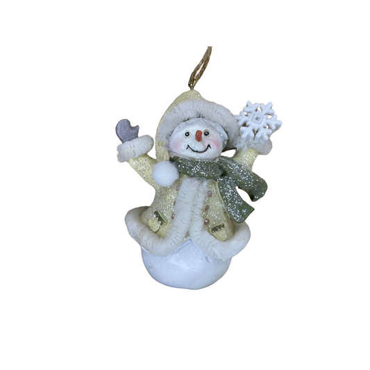 Ivory and Sage Resin Snowman Hanging Ornament Set